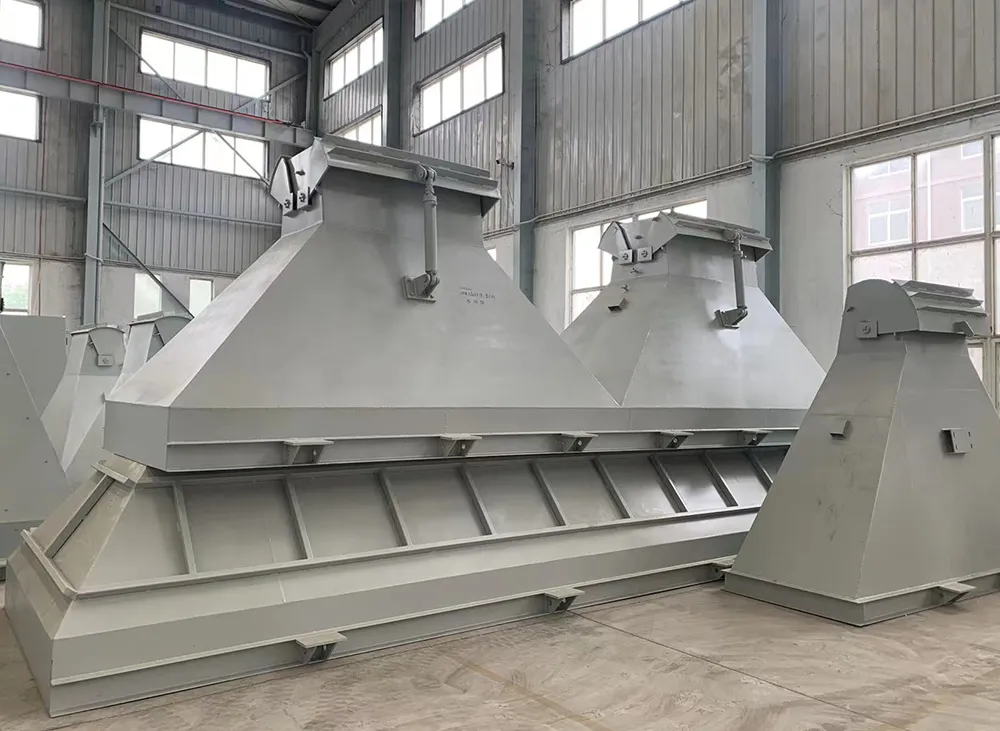 After the filter press completes filtration, the filter cake can be discharged into the accompanying sludge storage hopper for centralized transport. The size of the sludge hopper can be customized according to the model of the filter press and customer requirements, with two types of opening methods: electric and pneumatic.