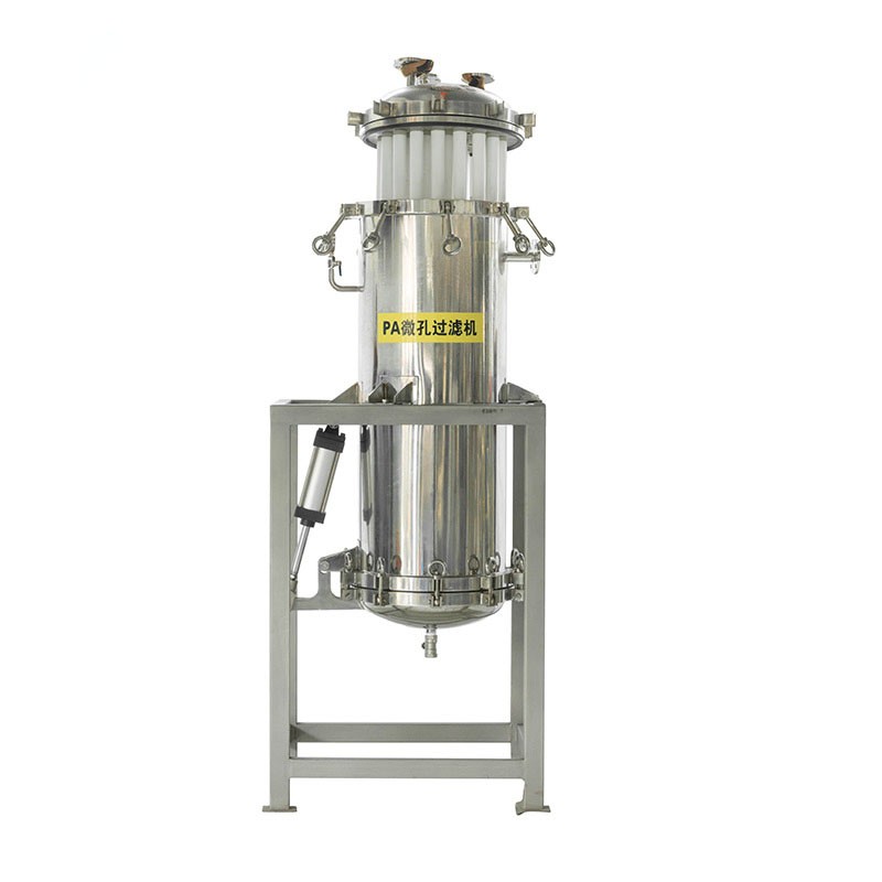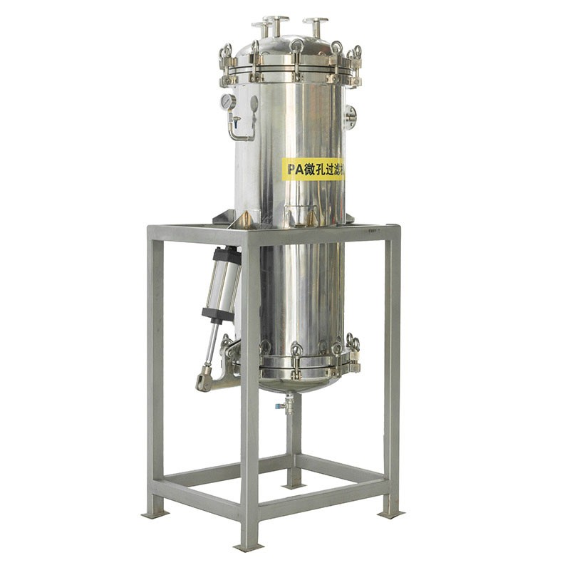 PA/PE micropore filter is a high precision rating of fine filtration equipment. The filter mainly uses PA/PE micropore filter cartridge sintered from macromolecular materials as the filter medium, with high filtration precision rating, the filter element can be regenerated and long lifespan. The PA/PE micropore filter adopts a fully enclosed filtration method, and it can equipped with pneumatic valves and PLC, which has a high degree of automation compared with ordinary filter.