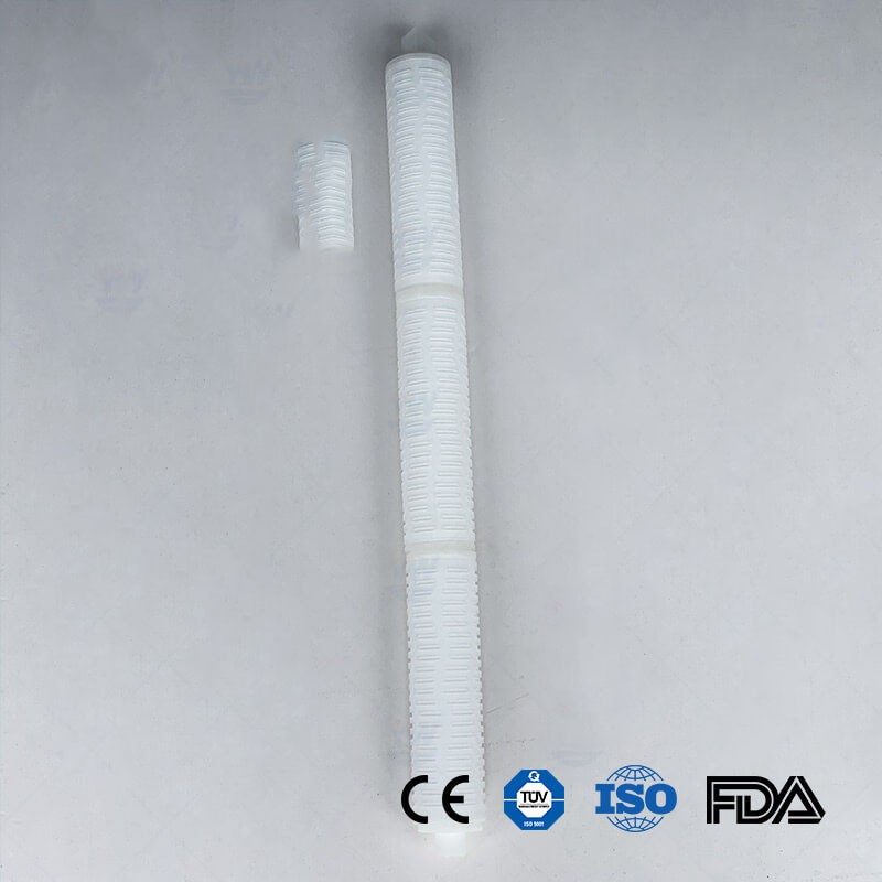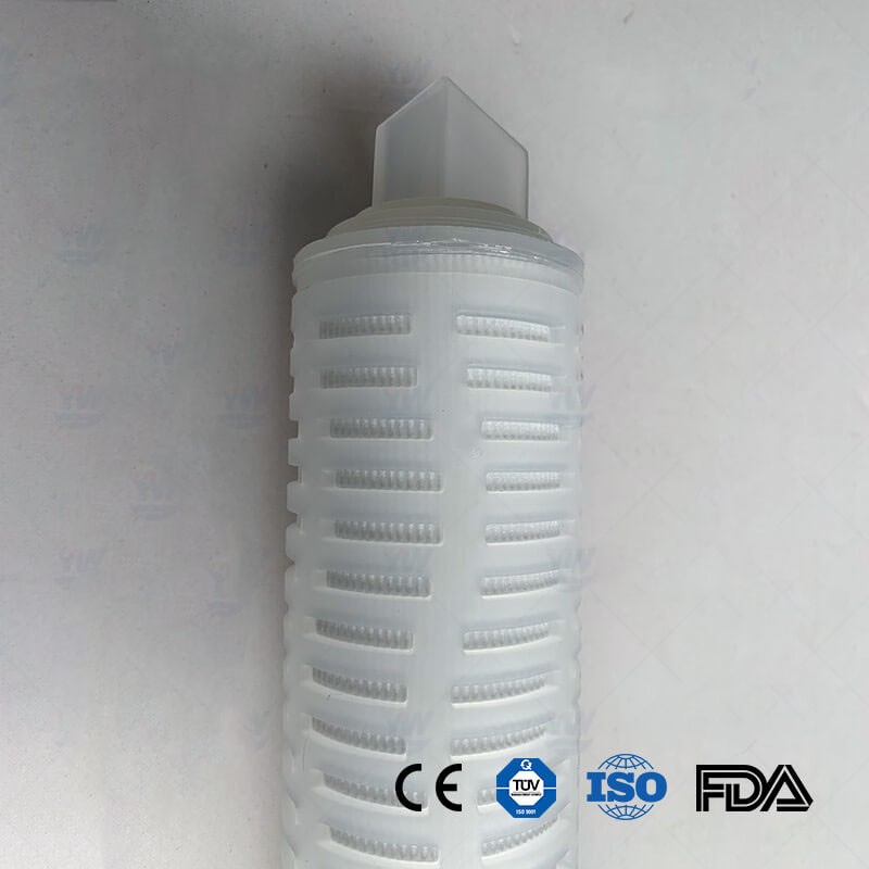 PP pleated filter cartridge has PP polypropylene folding filter, PTFE pleated filter, PES pleated filter and nylon pleated filter, can be selected according to the demand of different materials, please consult customer service for details.